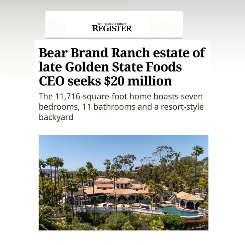 When a property carries history, scale, and presence, it tends to draw attention. That’s the case with a remarkable Bear Brand Ranch estate recently brought to market by Arbor Real Estate’s Phillip Caruso and Michael Caruso. The home was featured this week in the Orange County Register, highlighting both the property itself and the thoughtful representation behind it.